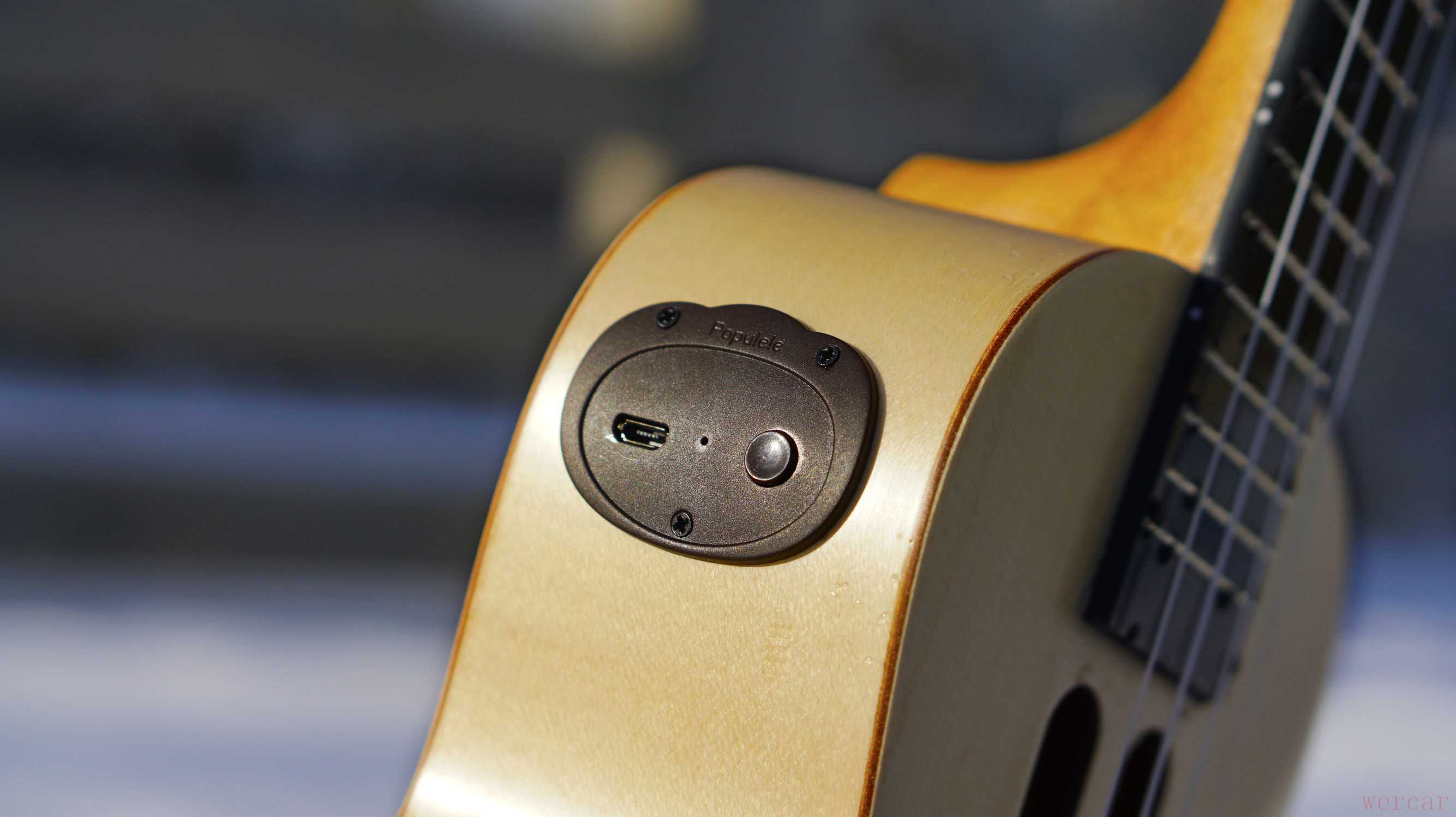 指板的侧面有背带的挂扣,材质是塑料的。在细节部分的最后要说说这个尤克里里的配件,配件真的是简单的不得了,只有一根USB的充电线就再也没有了,连个背包都不送,连备用弦都不送,连拨片都不送,连清洁套装都不送,这是闹哪样啊。