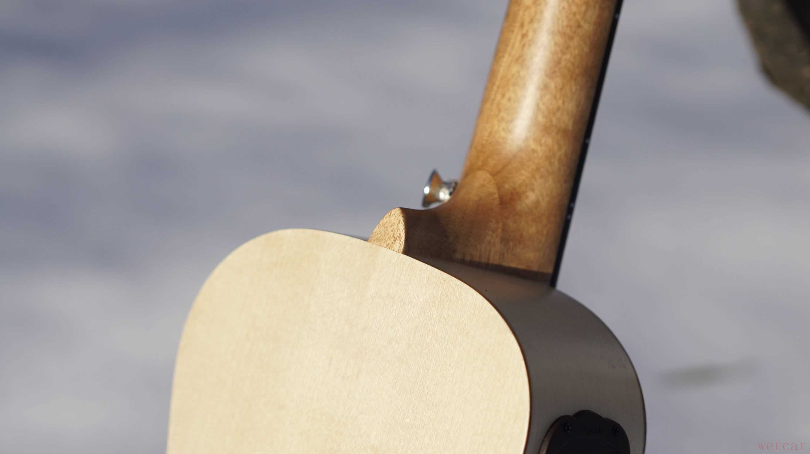 正面板材质为云杉面板,云杉在吉他选材中只能算普通的,背板采用的是枫木背侧板。最优质的尤克里里的选材是寇阿相思木,但是由于夏威夷禁止砍伐所以这种木材并不多见。Popululu的这种选材属于合板,合板的成本就比较低廉。但是要想音色好还得看制作的工艺。