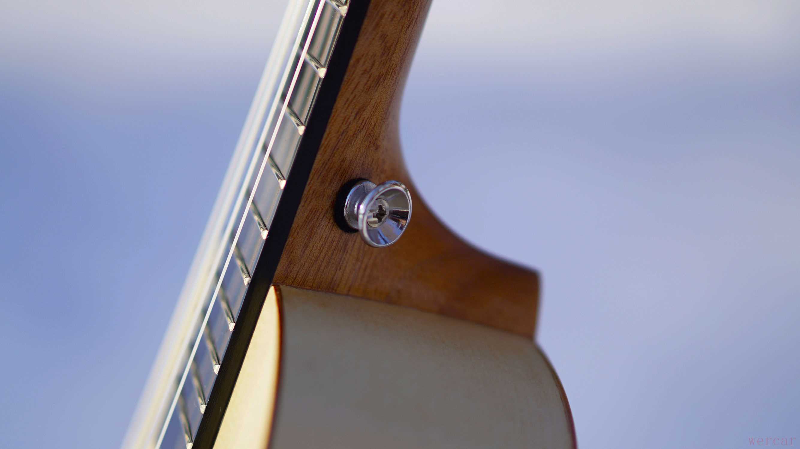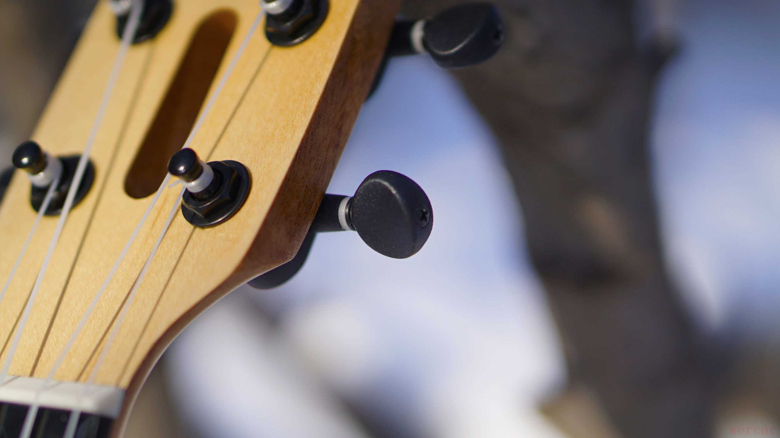 琴头的调节旋钮是塑料材质的,而市面上的与琴衔接的部分是金属喷黑漆材质,这部分纯黑色与木质颜色的搭配也算是比较不错的,旋钮的旋转非常的顺滑没有丝毫的阻塞感,方便调音的同时,带来的不便就是放置后再次使用一定要调音,不然音色不准。