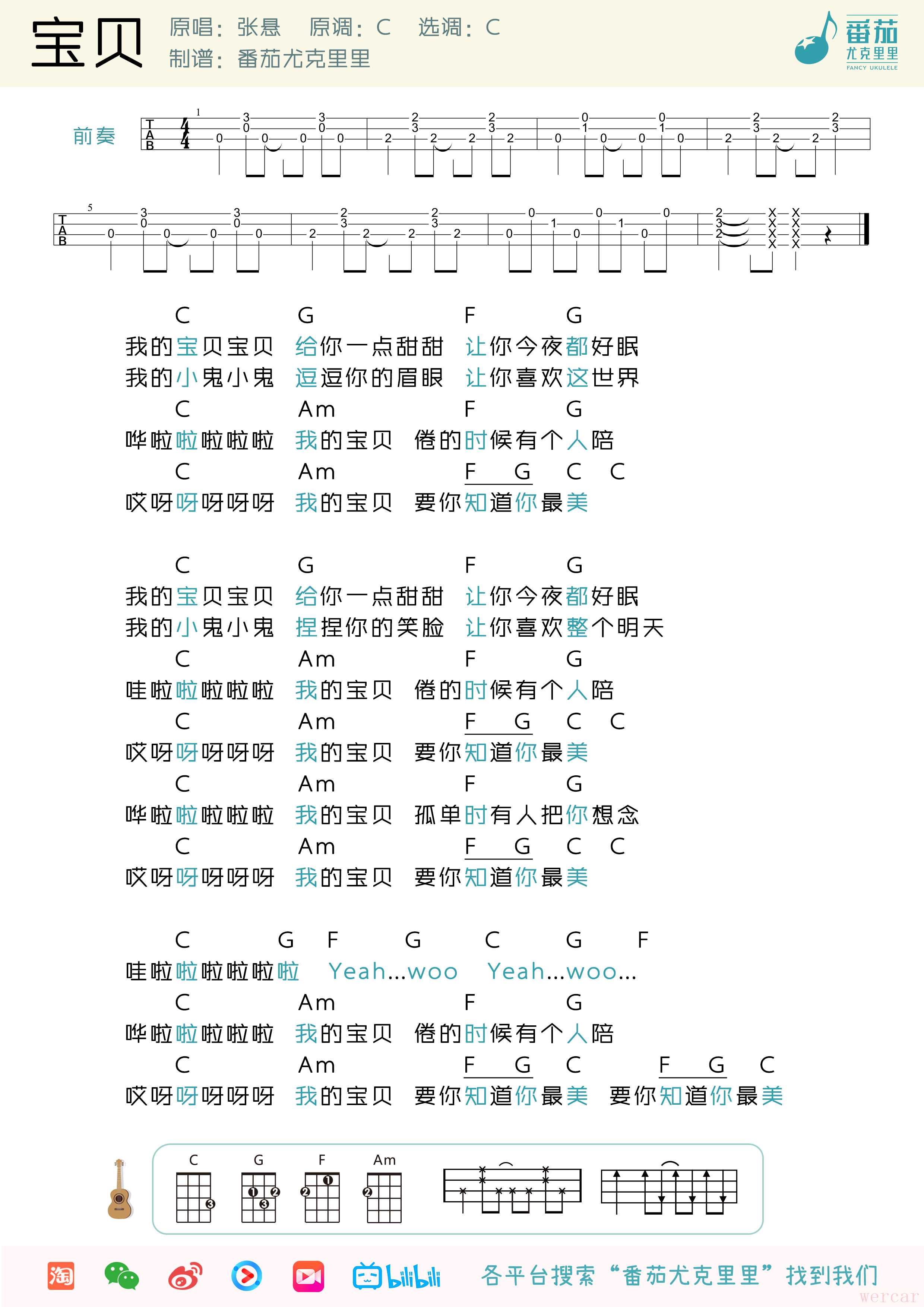 给你一点甜甜的旋律,张悬宝贝Ukulele弹唱曲谱教学分享
