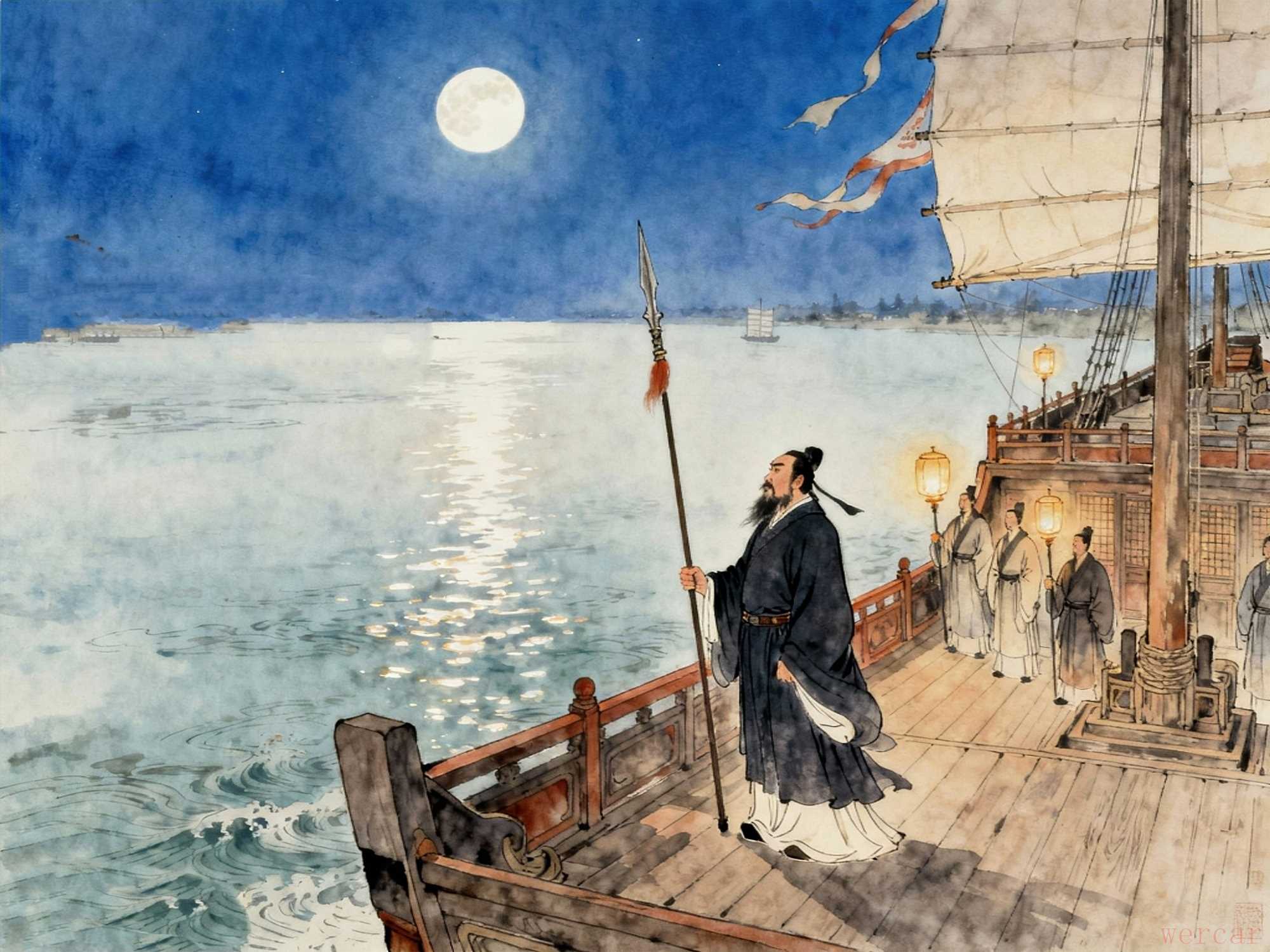 赤壁大战前夕,曹操置酒设宴于大船之上,酒酣耳热之际,横槊赋诗,吟出了《短歌行》中的千古名句:“月明星稀,乌鹊南飞。”
