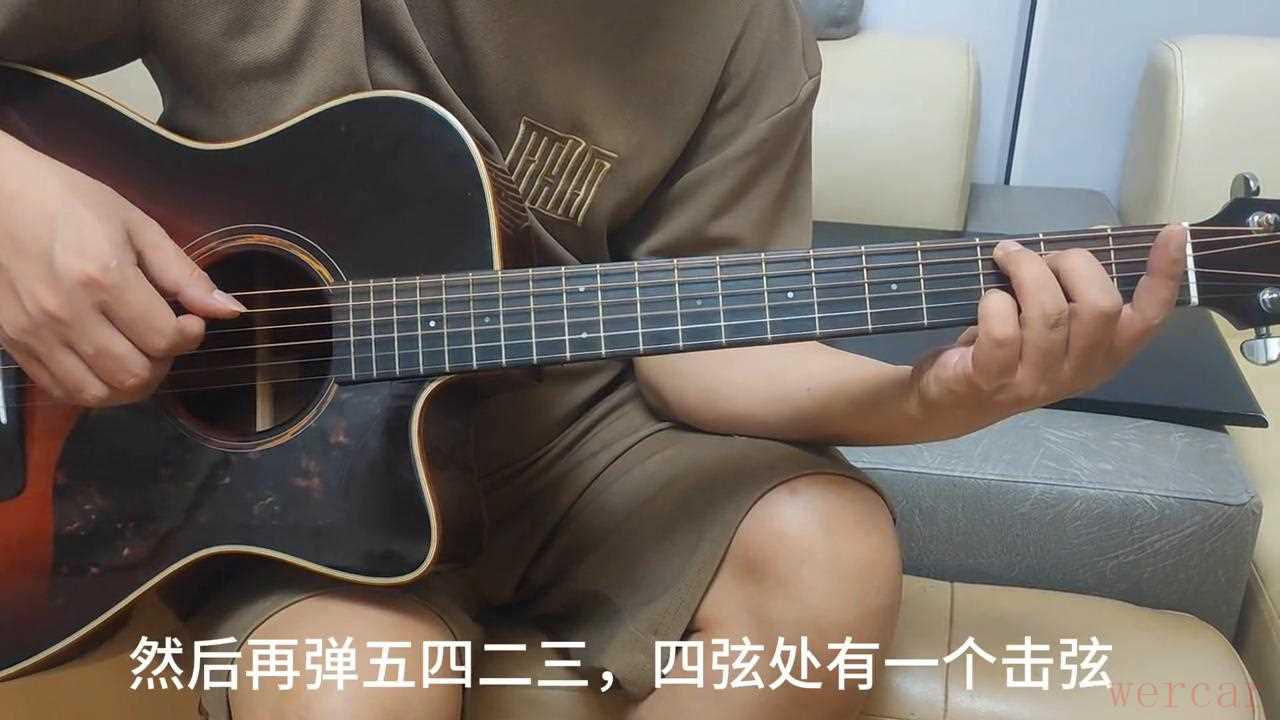 ·小拇指不动,无名指去摁六弦三品,弹六四二三,再弹六弦、二弦、六弦二品、二弦。