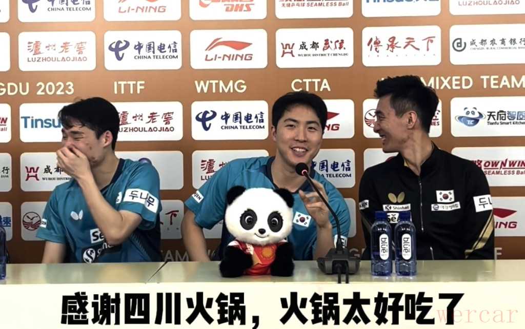 当然,喜欢成都美食的不仅只有球迷。虽然这次比赛的节奏非常快,甚至每支球队最少有两天需要双赛,但前来参赛的韩国队还是忙中偷闲,在成都街头“City Walk”,甚至晚上比赛结束后,他们不乘坐大巴返回酒店,而是徒步从赛场走回酒店,欣赏成都夜景的同时,也不忘品尝一下成都的美食。当韩国队战胜日本队后,被问及取胜的秘诀,林仲勋笑着说,“成都火锅太好吃了,其他的川菜和好吃的也很多,这些美食给我们赋能,让我们拿下这场比赛。”成都美食对中国乒乓球队队员也是挡不住的诱惑,不过大赛期间他们可没法外出品尝,孙颖莎说,这里有很多辣的菜,但是在训练和比赛期间她不会食用辣的食物,在休闲的时候可以尝试一些成都的辣味美食。