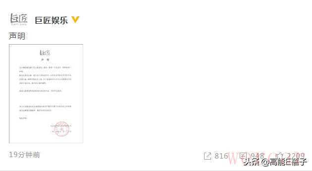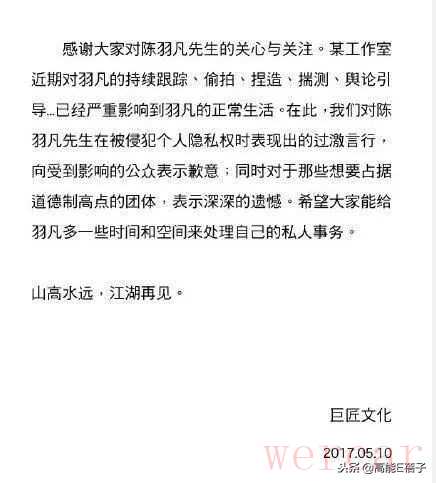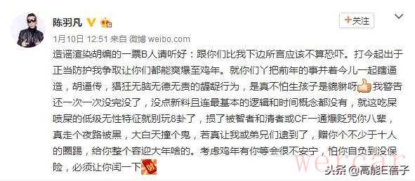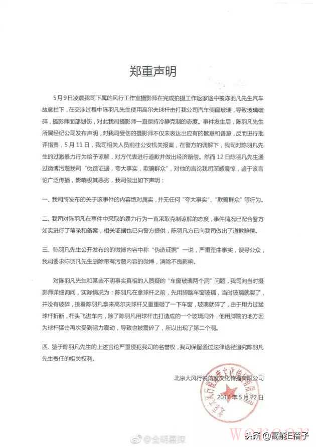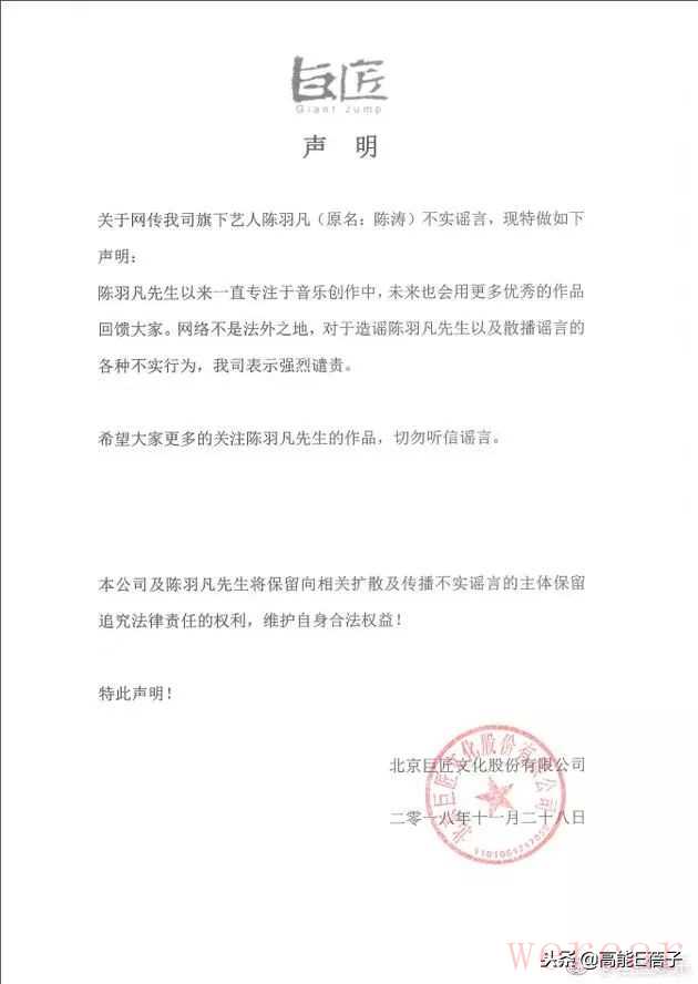 事后,陈羽凡所在公司发声明,表示被捏造事实。