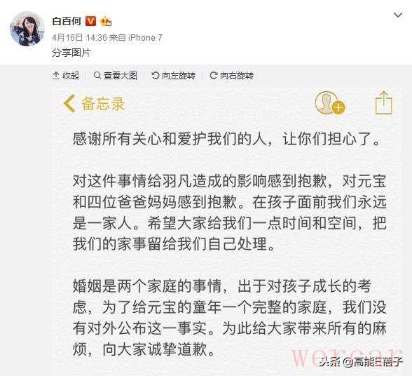 事情曝光后,轰动娱乐圈。陈羽凡最先发声,他表示早在2015年,他已经和白百何协议离婚,作为道歉,他会无限期地退出娱乐圈。