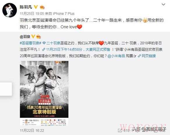而陈羽凡的最新状态,还停留在演唱会的宣传上。