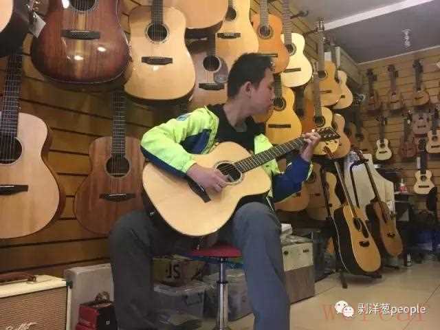 4月8日下午,他跟一个叔叔买完古典吉他,回到住处,希望尽快结束采访,以便有更多时间扒曲子。