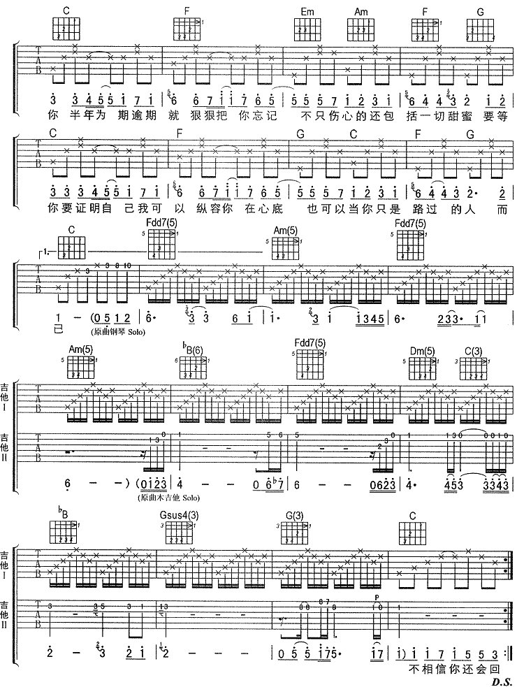 - 学习一些吉他技巧,如扫弦、拨弦等,以丰富歌曲的表现力。