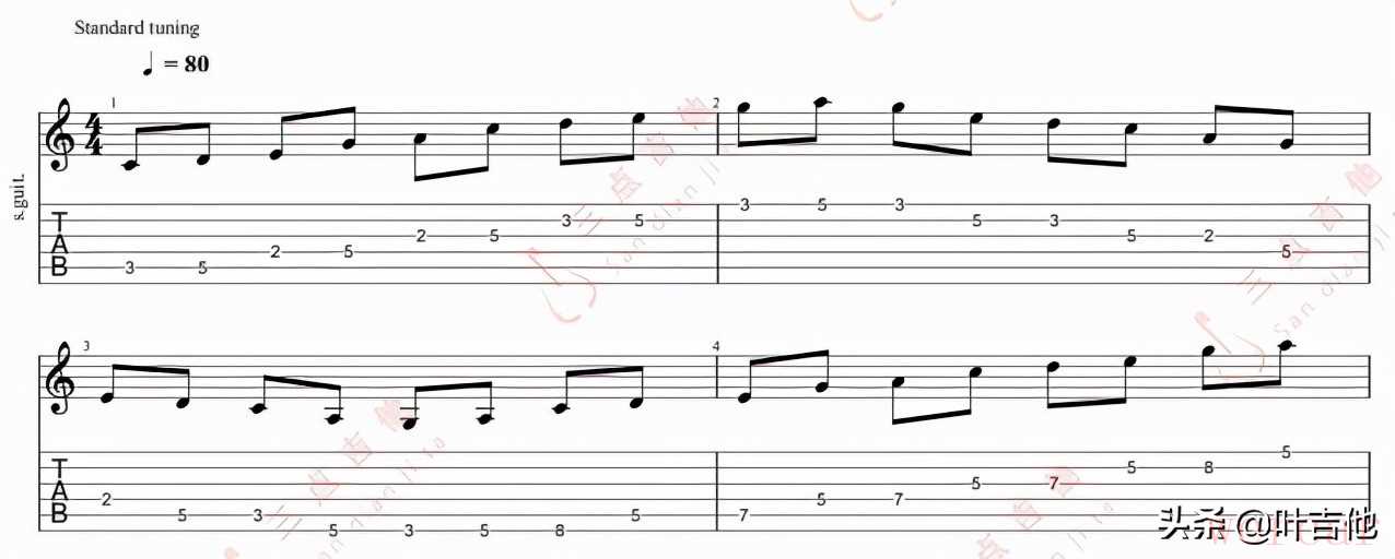 这些熟悉了之后我们就可以直接用五声音阶来加花了:
