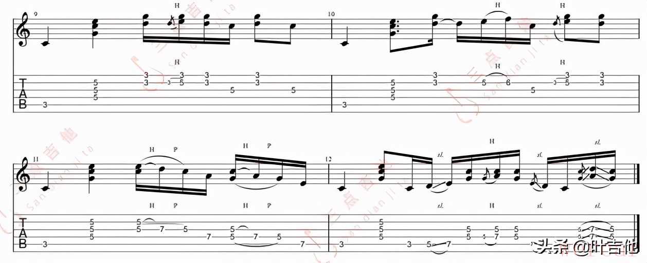 其他三个小节没有什么特别难的理论知识,就是顺手弹了一个五声音阶而已,而且时不时地涌上双音,直接上视频:
