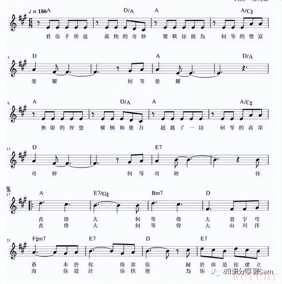 以该曲谱为例:1、开篇看到3个#号,查询五度圈,3个升号代表这是一首A大调歌曲,也就是1=A;