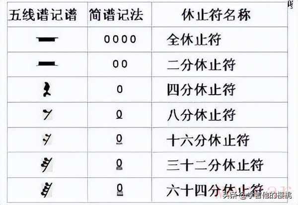 音乐中除了有音的高低,长短之外,也有音的休止。表示声音休止的符号叫休止符,用" 0 "标记。通俗点说就是没有声音,不出声的符号。休止符与音符基本相同,也有六种。但一般直接用0代替增加的横线,每增加一个0,就增加一个四分休止符时的时值。
