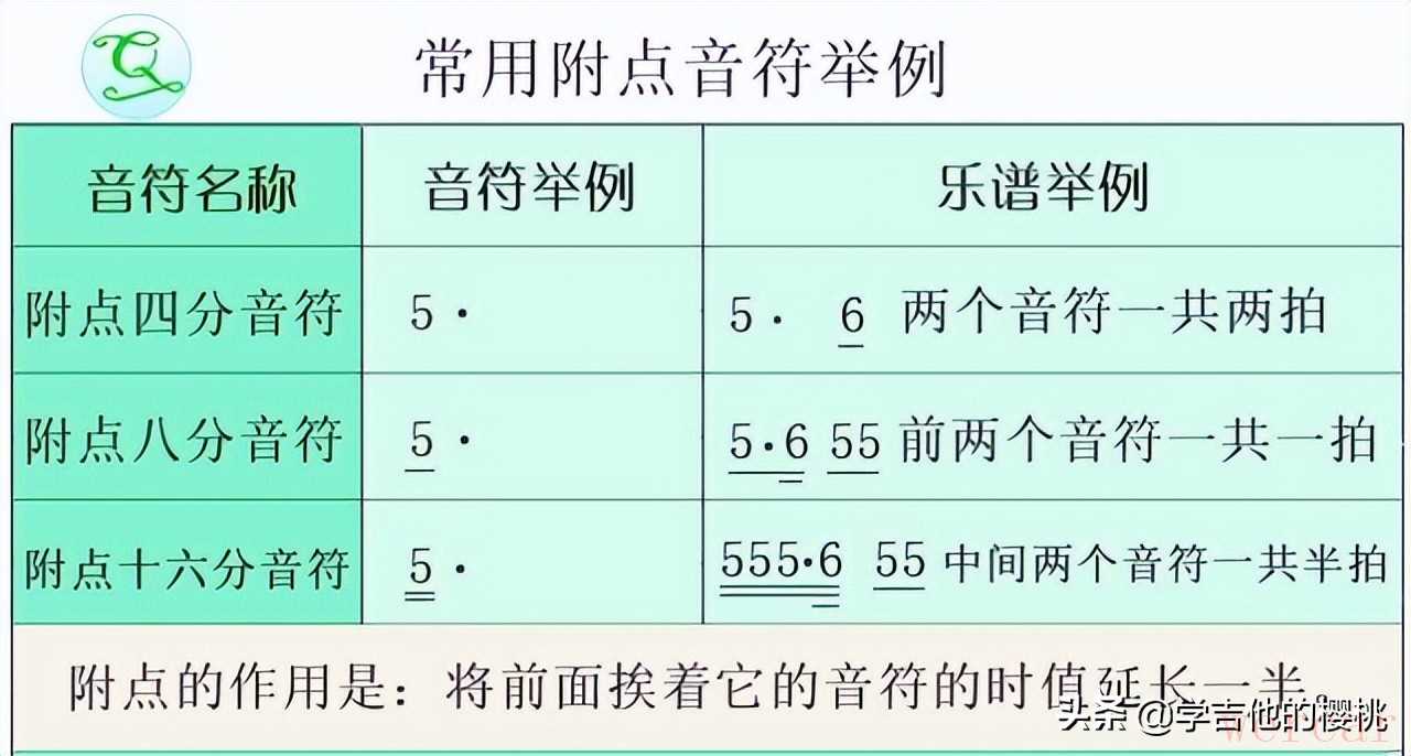 附点音符:包括单附点音符和双附点音符(复附点音符)。因为单附点音符比较常用,所以通常说附点音符指的就是单附点音符。单附点将音符的时值增加一半,第二附点则将第一附点的时值增加一半。全音符和二分音符的附点不用圆点而用增时线。