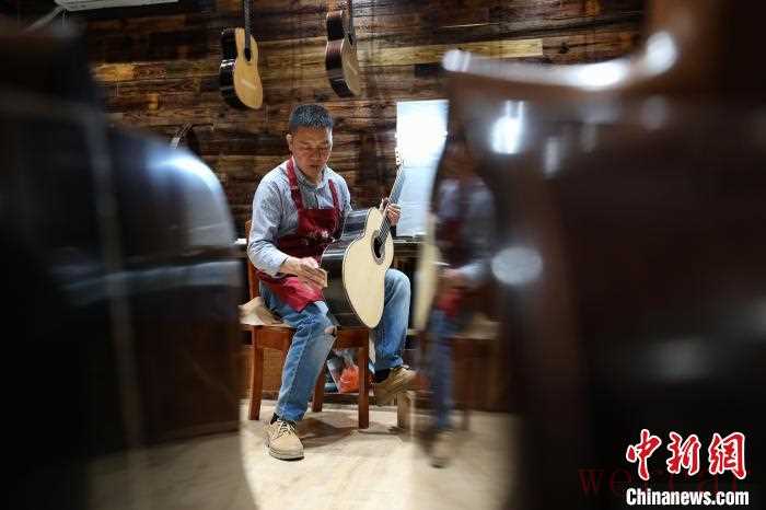 6月4日,张维义在查看制作完成的吉他。 瞿宏伦 摄