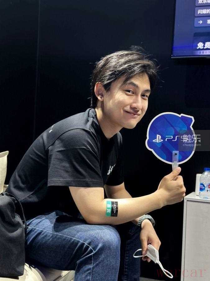 2024年ChinaJoy,薄彩生穿着《影之刃零》的T恤在索尼展台