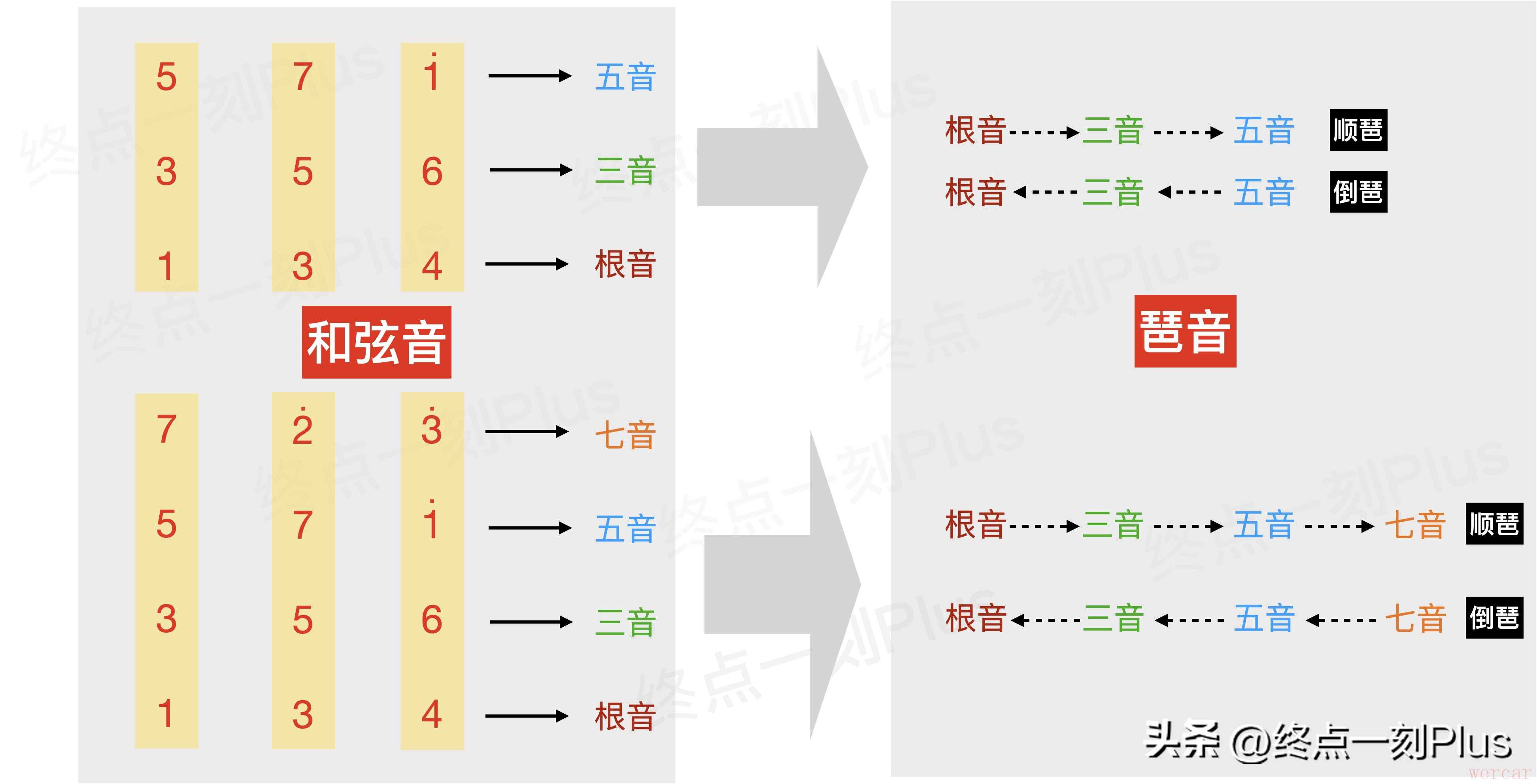 你是否对即兴solo感兴趣?感兴趣的话那就绕不过一项基本功练习哦~那就是练习弹琶音。什么是琶音?弹琶音有什么作用?吉他上弹琶音有哪些规律?如何练习?今天跟大家分享下琶音相关的知识,希望短短2分钟能让你对琶音有一定的了解和收获。建议【点赞+收藏】再看,便于反复学习~阅读前,你应该先了解和弦以及七和弦相关的乐理知识,请先点击下面链接阅读: 【吉他干货】你可能不知道的和弦秘密!赶快收藏!【吉他干货】2分钟轻松学会七和弦 【吉他干货】七和弦在指板上的推导逻辑,太实用了 简单地说,琶音是将和弦音“分解”后从低到高或从高到低依次奏出。起始音不一定从和弦的根音开始,可以从任意和弦内音开始依次奏出。