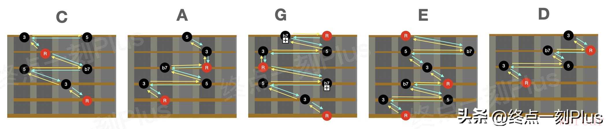 属七和弦琶音指型: