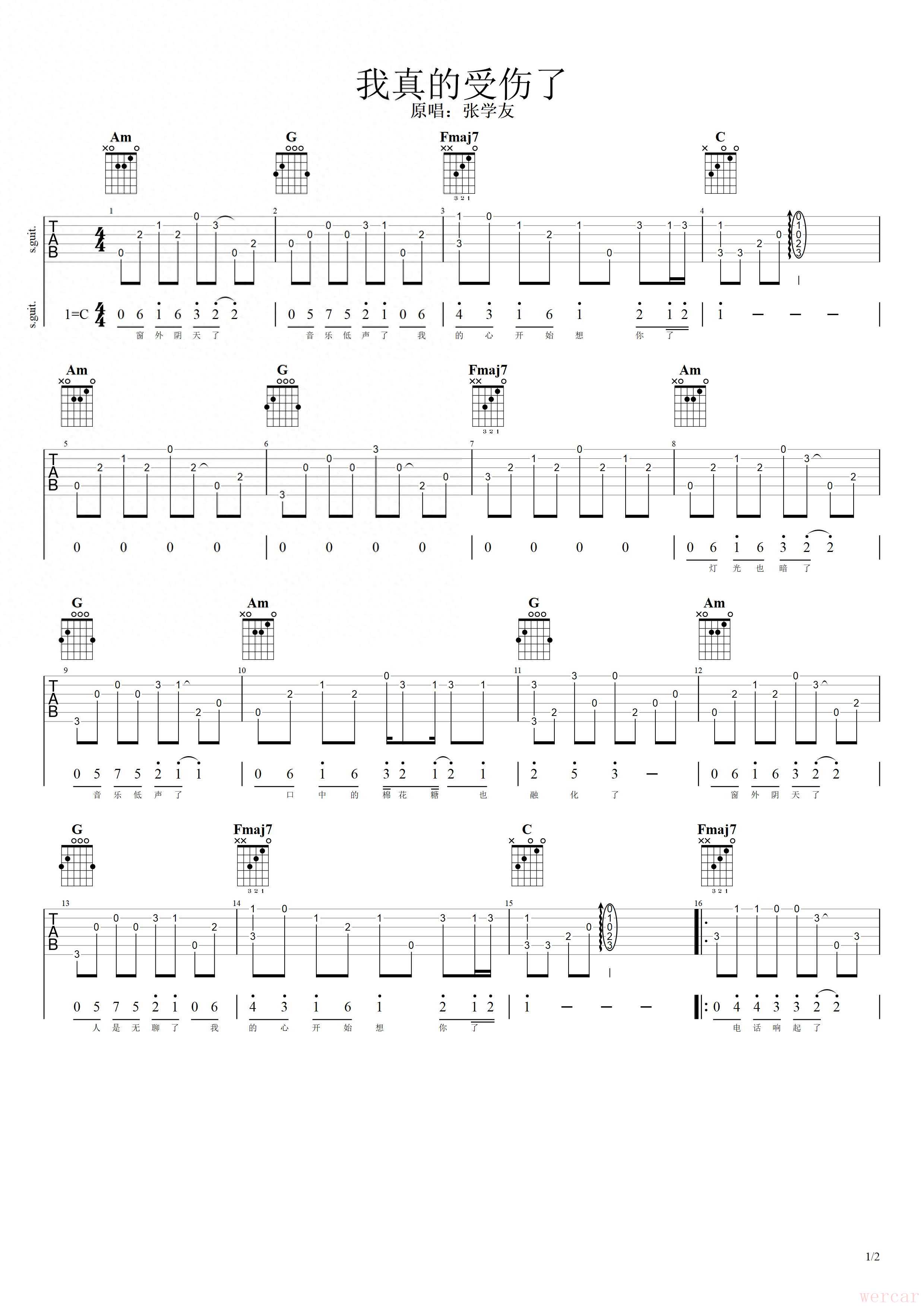 以下仍以《我真的受伤了》为例,完成主旋律加和弦的编谱。