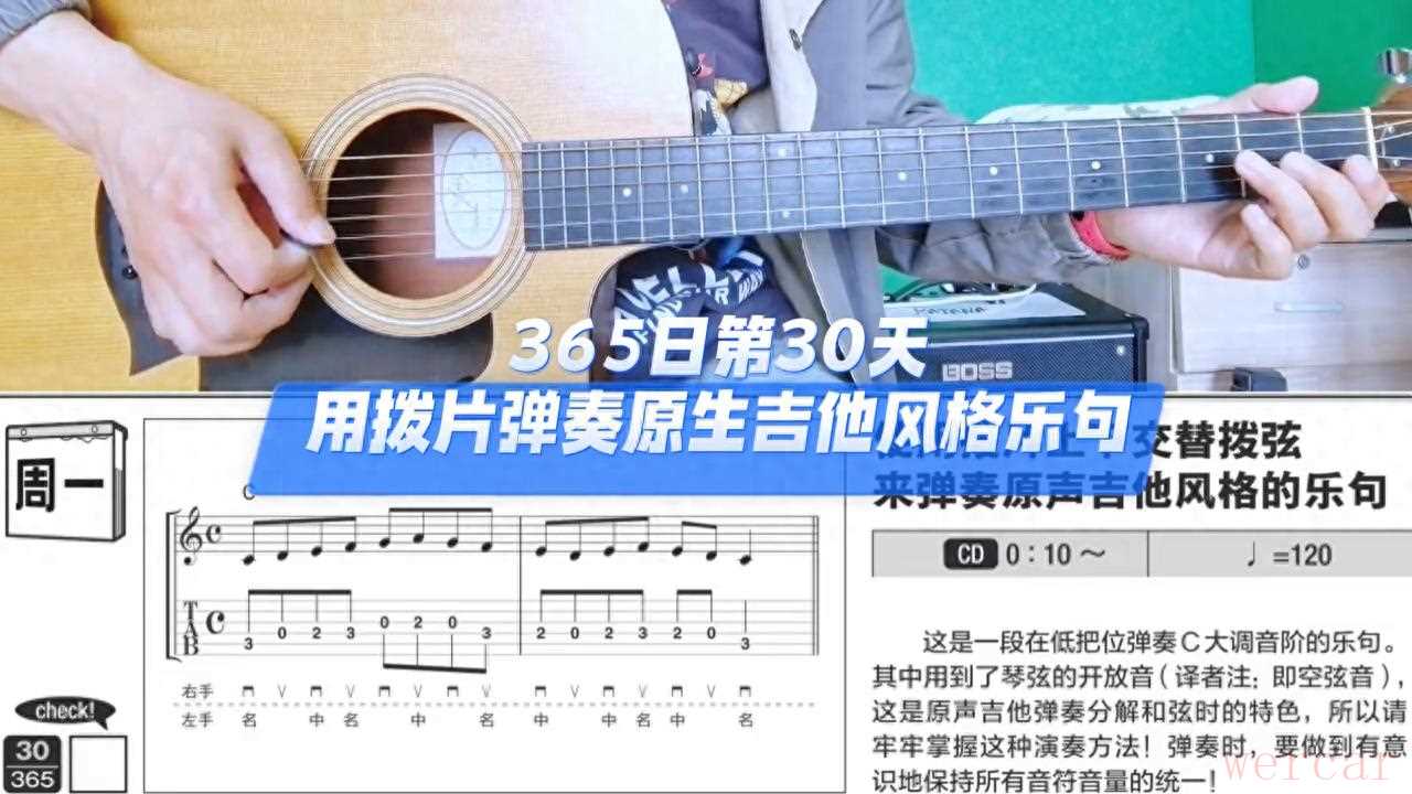 365日第30天:用拨片弹奏原声吉他风格乐句。