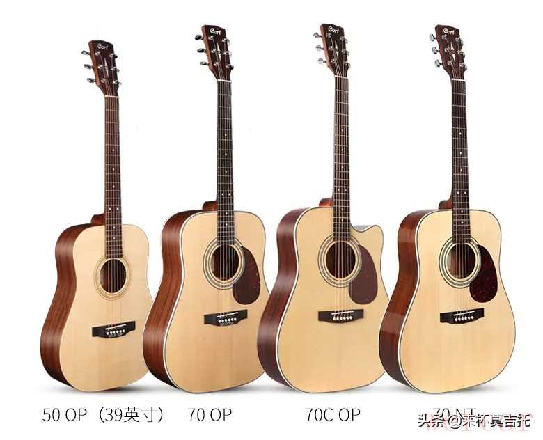 第二款:CORT EARTH 70,参考价格:1598元采用的是云杉面板、桃花芯背侧板的面单琴。考特吉他也是吉他行业的一线品牌,国内木吉他较为流行。整体感觉声音偏亮,音量和共鸣都还不错,手感舒适,握着也舒服,一些小细节如油漆、品丝、琴身各部位的连接处都处理得不错。