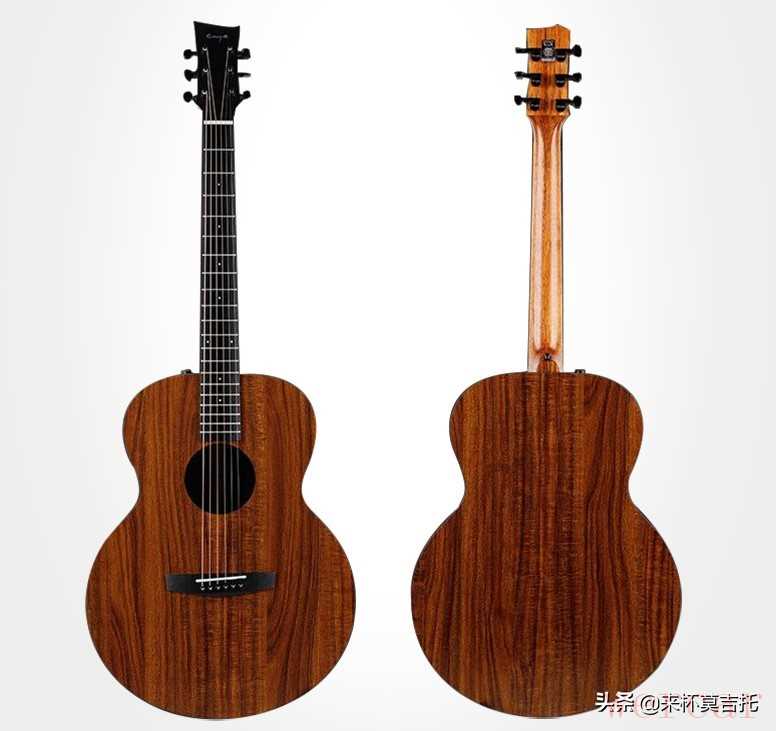 第三款:ENYA X-1,参考价格:899元ENYA X-1采用41寸AJ桶形,并非常见D型桶,琴身全相思木HPL(HPL,英文全称High-pressure Laminate,学名为热固性树脂浸渍纸高压层积板,属于合成材料)。个人认为与合板性质无异。恩雅主要是做尤克里里的,但近年来厂家推广力度大,名气也相当不错,这款琴低音沉稳,但因为采用的是AJ桶形,整体音量不大。