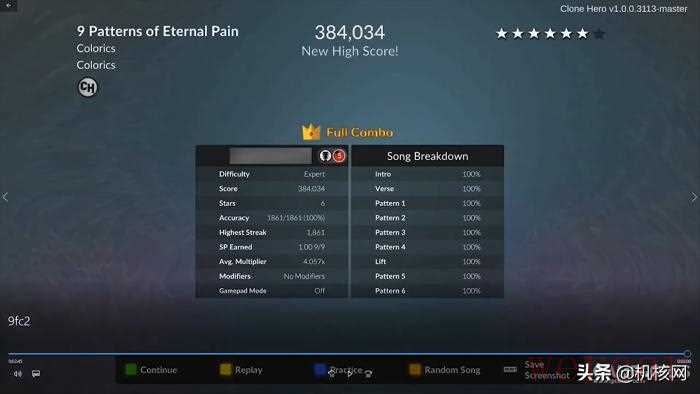正常情况下,Highways滚动速度并不会产生变化,而Schmooey视频里的则在结算画面出现前变慢了,其实这是利用外挂软件Cheat Engine达到的效果。在《Clone Hero》里它可以做很多事,例如让歌曲和谱面下落速度同时变慢,视频后期再通过加速打造一场完美的FC。