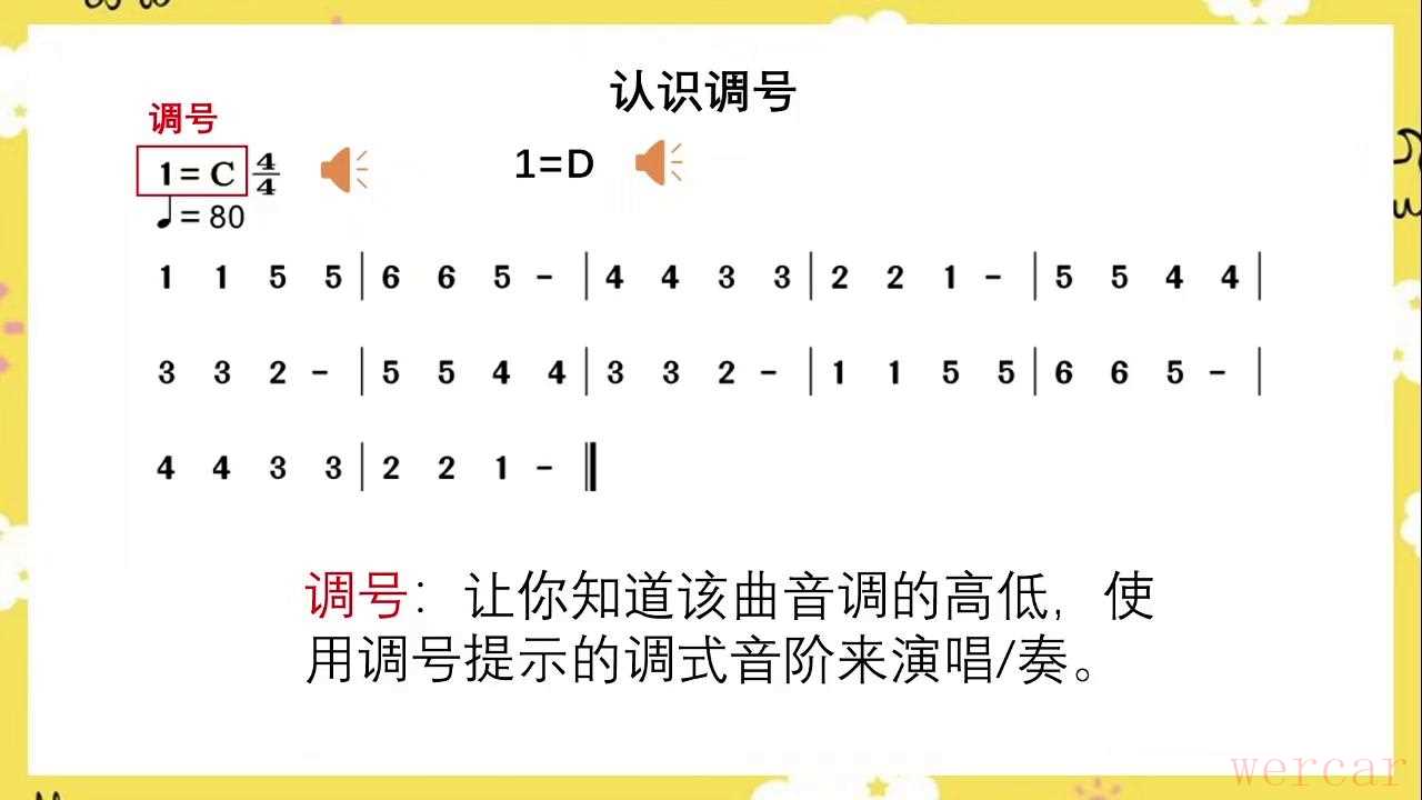 哈喽大家好,我是你们的王子老师。今天讲解一下调号。现在看到do等于c,它就是谱词上面的调号了。调号怎么理解?让你知道该取音调的高低,使用调号提示的调试音阶来演唱。听听它的旋律。