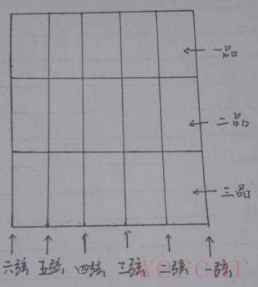 这是小编吉他的吉他指板,从其中截取出前三品格。继续看下图