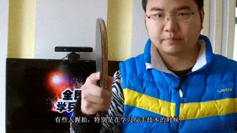 2.食指靠近中部:学习反手时别扭,应适当调整食指位置。