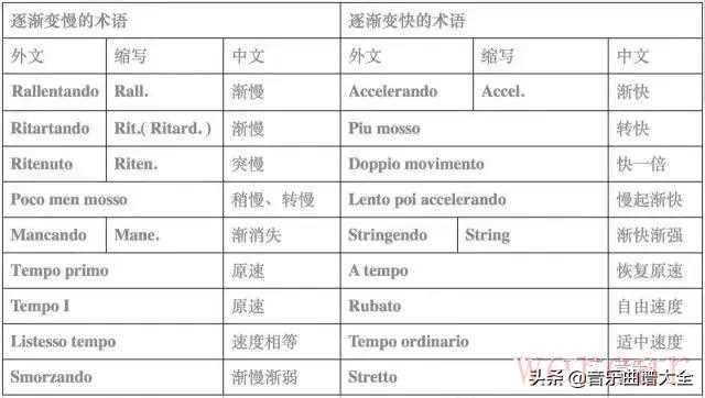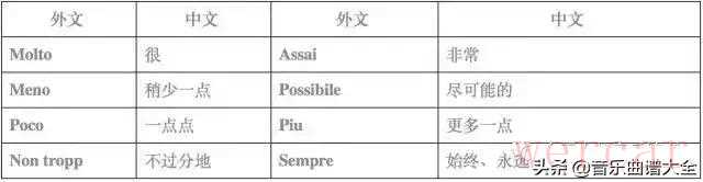 另外,还有一些常用的补充用语,来说明速度、力度的细微差异: