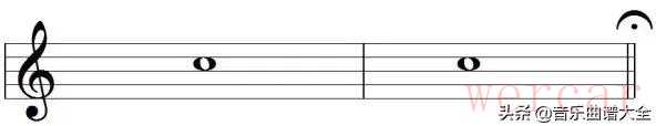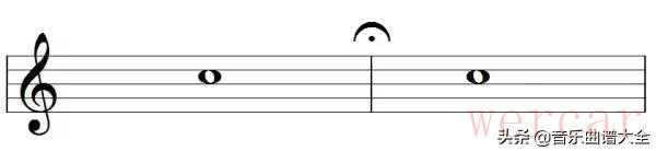 (2)写在小节线上方,表示两小节之间要做片刻停顿,然后再继续进行。