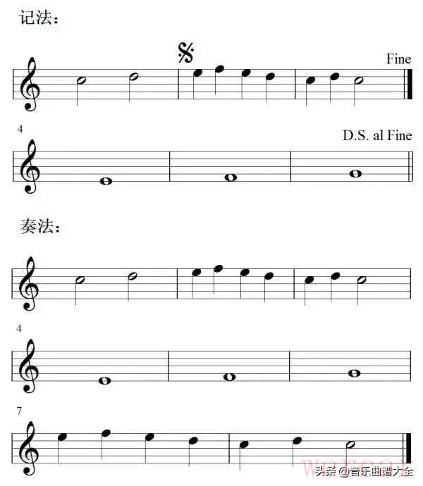 (4)D.S. al Fine 从S开始反复到Fine结束。