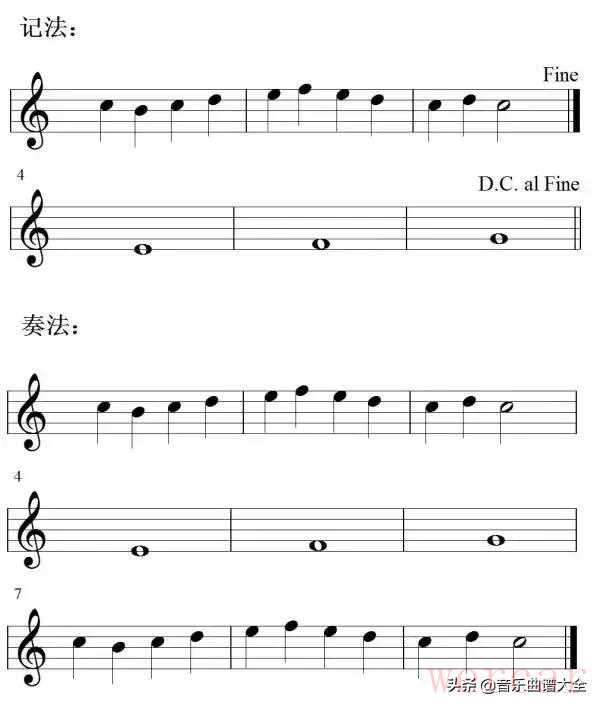 (3)D.C. al Fine 从头开始反复到Fine结束。