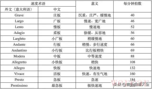 一般都是意大利语,可以用节拍器速度来参考,表示每分钟多少拍,但是在实际演奏中要根据具体情况酌情决定,常用的由慢到快排列。