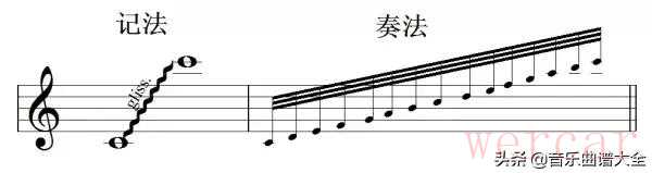 (6)刮奏记号gliss,要用指甲在琴键上刮过去: