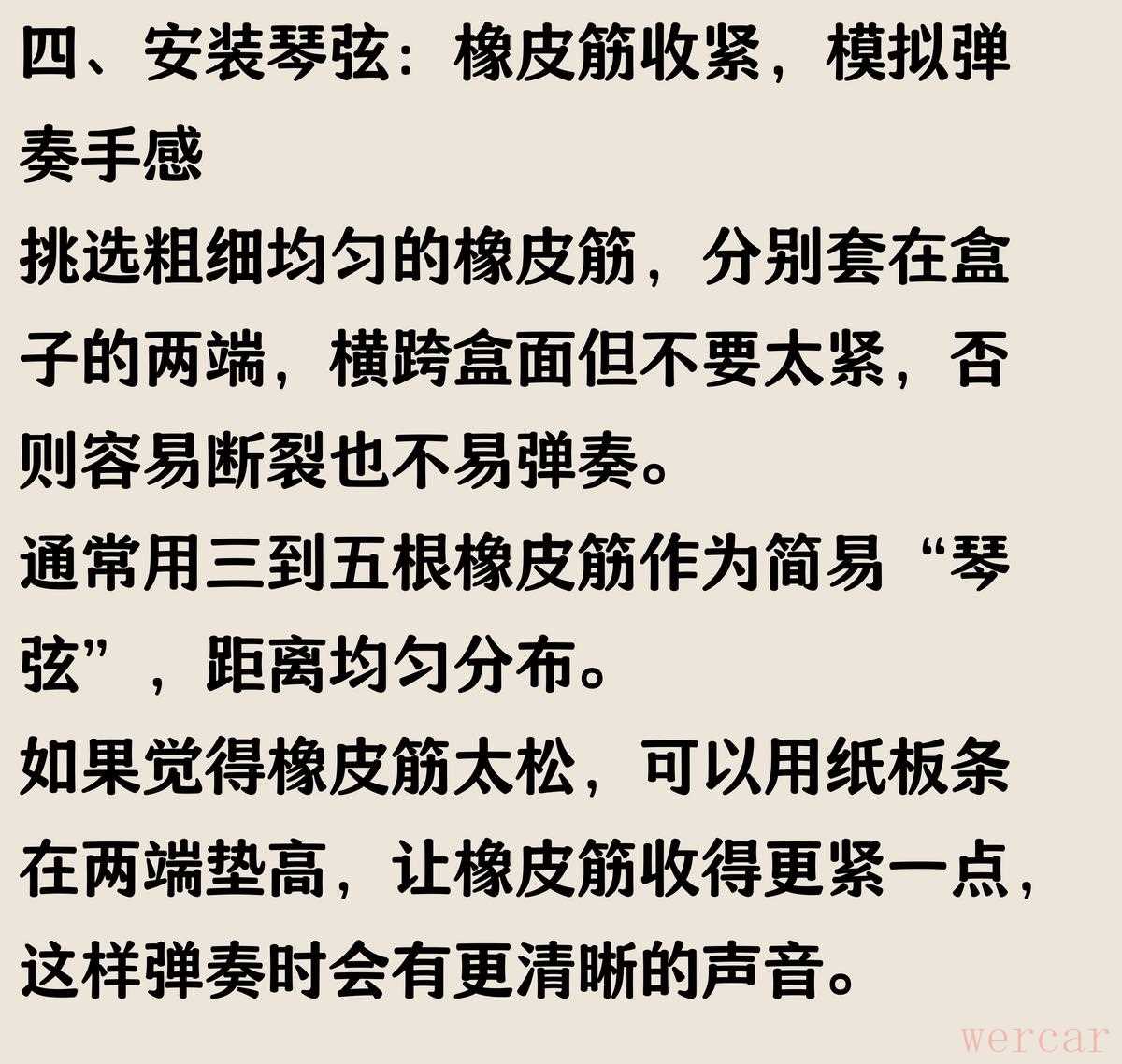 不少人都想动手做一把属于自己的简易吉他,其实用身边常见材料就能完成。准备好木板、橡皮筋和纸巾盒,按照步骤安装好琴身和琴弦,不需要太多的专业工具。只要跟着流程一步步来,即使没有手工经验,也能做出能弹奏的吉他。