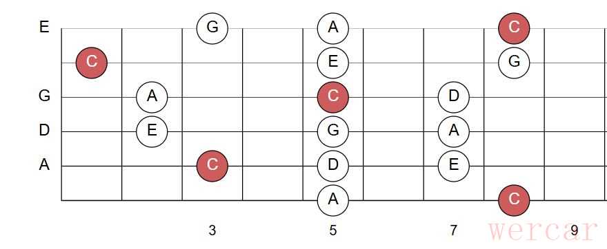 4、CAGED系统与五声音阶的关系