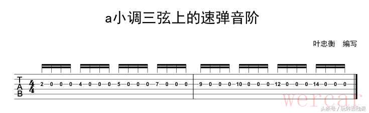 "单音音阶:" 最直接的方式是沿着音阶逐个弹奏音符。你可以只用拨