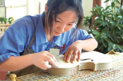 走进华东乐器有限公司的生产车间,修弦枕、磨弦槽、打琴轴、上音柱、修琴码……一道道工序正有条不紊地推进,35岁的郭增慧正熟练地组装提琴。“来这里之前,我就是一位普通的家庭主妇,干过很多份工作,音乐和提琴对我来说是很遥远的东西。”郭增慧感慨。十年前,她从河北张家口嫁到东高村镇附近的三河市,靠着家里的几亩田地,生活并不富裕。在朋友的介绍下来到提琴厂,厂里的工资可观,按件计酬,时间机动灵活,可以随时照顾家庭。于是,她在这儿一干就是十几年。