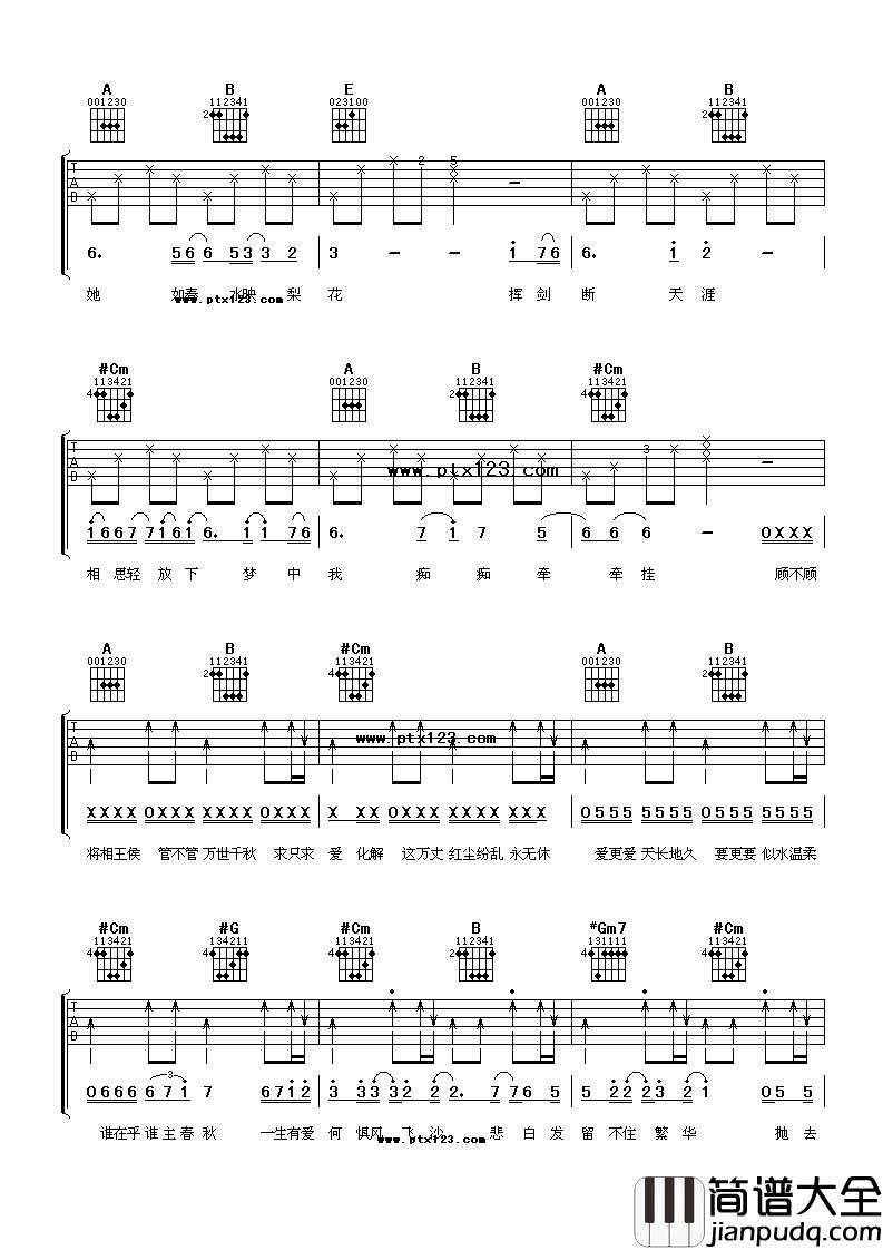 3. "指法":吉他弹唱的指法要准确,特别是和弦的指法。可以参考吉他谱,确保每个和弦都弹得准确。