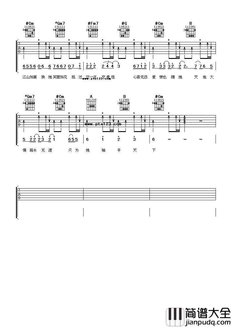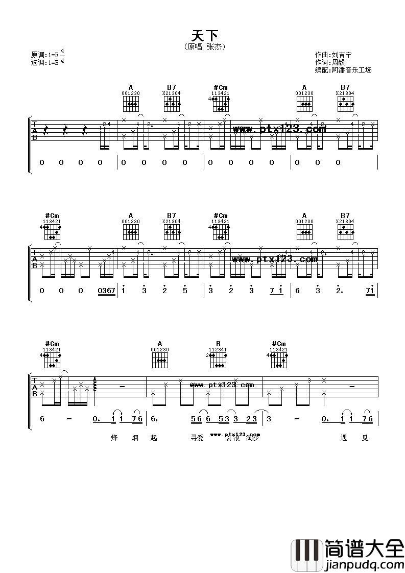 2. "和弦转换":《天下》这首歌的和弦转换较为复杂,需要提前练习和弦的转换技巧,确保在弹唱过程中流畅自然。