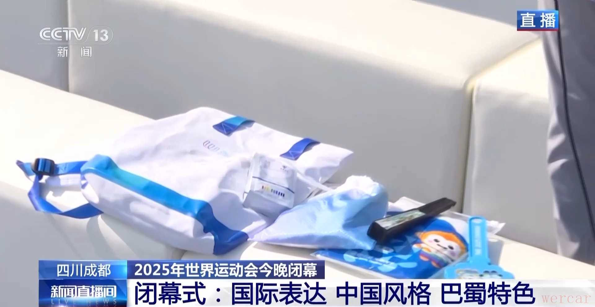 再过几小时,成都世运会闭幕式即将开启。在现场也为参加闭幕式的嘉宾和媒体准备了应急随身包,里面有矿泉水、扇子、帽子、雨衣等小物品,非常贴心。