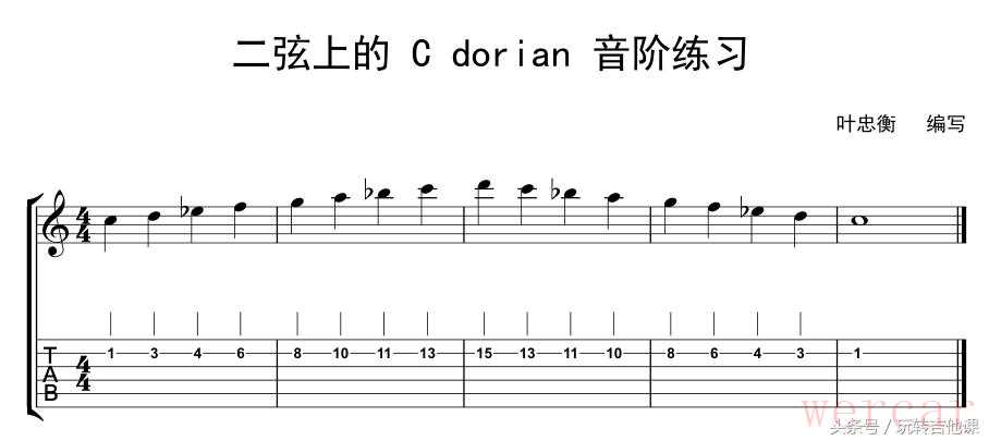 切记:刚开始学习一条新的音阶,在一根弦上做练习,这是最直观的音阶学习方式,音阶结构一目了然!(视频中有讲解)