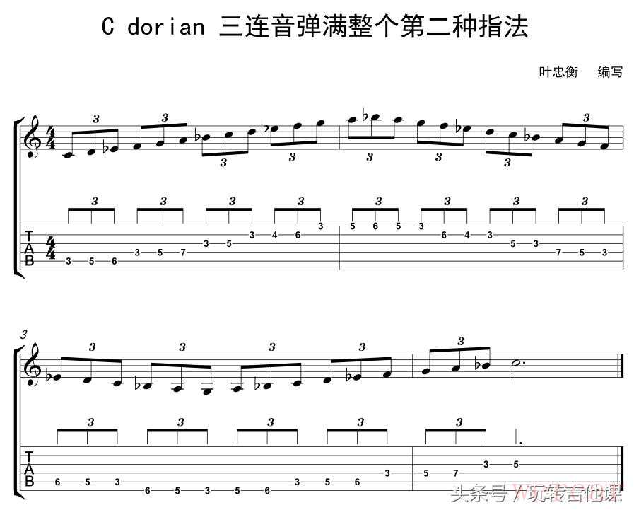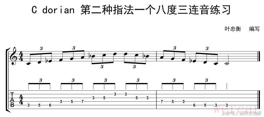 第一个套路:用swing和三连音做一个八度的恋习,从根音走到9音再下行!如谱: