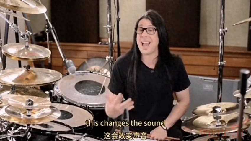 与其他类别乐器相比,架子鼓真的是"零部件"太多的乐器。你知道吉他是有弦的,吉他上不同的弦会改变声音。在架子鼓上有很多东西可以敲击,我面前正好有一些,与小尺寸的鼓正好相反。大多数时候,鼓的部分都是嗵鼓组成。这里的这些东西,让我让你听听它们。