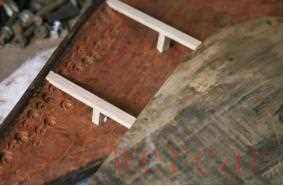 修复方案中最重要和最关键的一环,就是面板不作更换。将已经变形翘起的面板(振动板)原件,通过浸泡工艺完整取下,然后整形平复后再重新嵌入背板。这样做当然有相当的风险,浸泡过后的老面板是否还能保持正常的振动发声和声学品质都未可知,但这种方式却可以最大限度保留老琵琶的原韵,若更换新面板,则又需整琴重新“协振”,即使经过长期演奏声学品质走向成熟,或直接更换其他老琵琶的老面板,也难保韵味没有偏差。