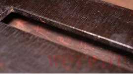 首先,裴金宝仔细检查弦路的高低平斜,根据实际情况确定了增减方案。对于高起的地方,采取边磨边试的方法进行调整;而对于低陷之处,则使用 80 目的鹿角灰与生漆(加入触媒药物)混合成黑色腻子进行填补。待腻子干燥后,用 500 号水砂纸轻轻打磨,去除多余的凸起部分,确保表面平整。接下来,再用 100 目的细灰黑腻子经过多次平刮,并蘸取少量水使用 600 号水砂纸细细打磨至表面光滑无瑕,逐步达到不出沙音。