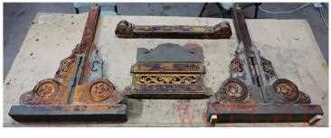 黑漆彩绘云龙纹瑟架修复前