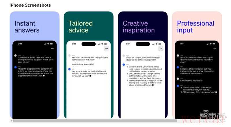 总体来看,iOS版ChatGPT的功能,基本与网页版的无异,比如即时问答、给出定制化建议、提供创作灵感、在生产力方面进行专业协助以及帮助用户学习语言、历史等内容。