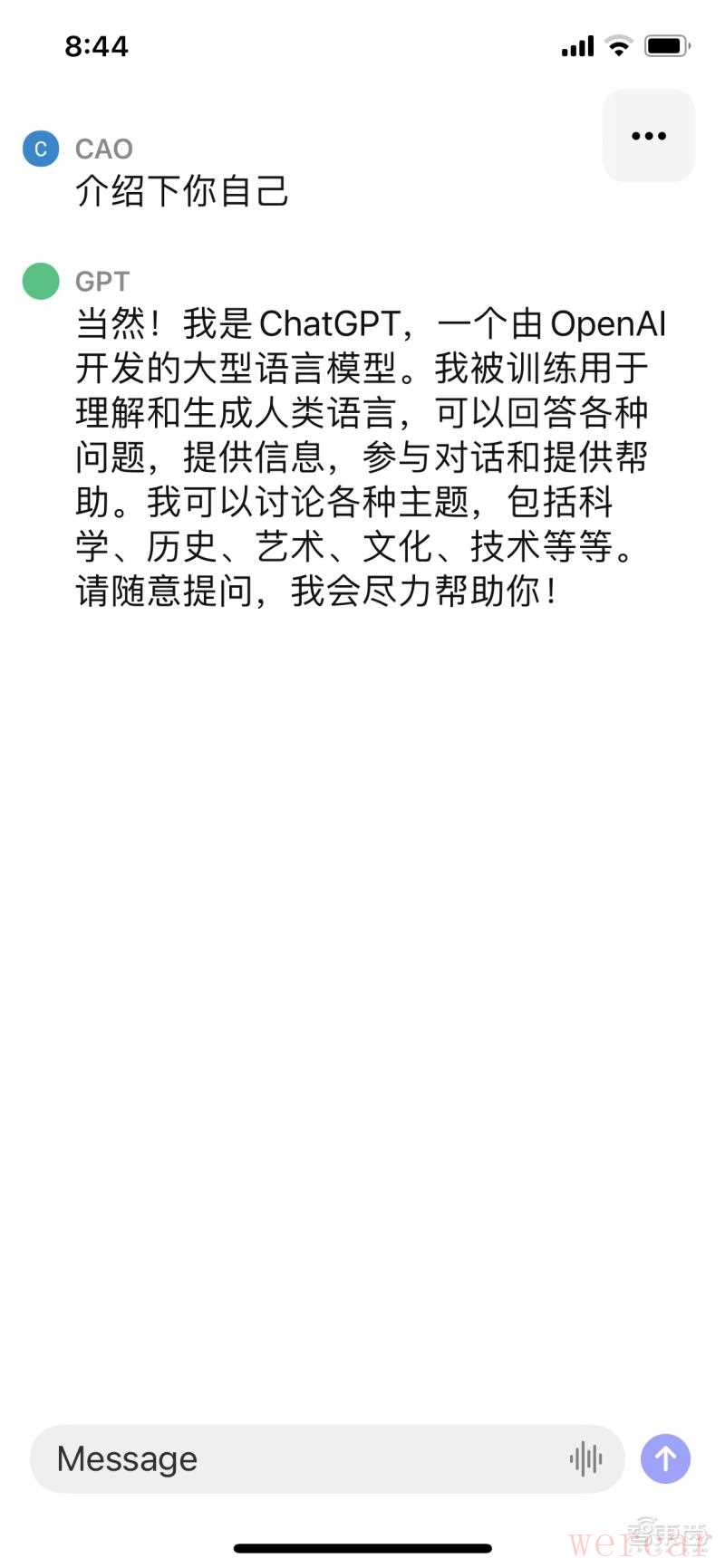 让iOS版ChatGPT进行自我介绍